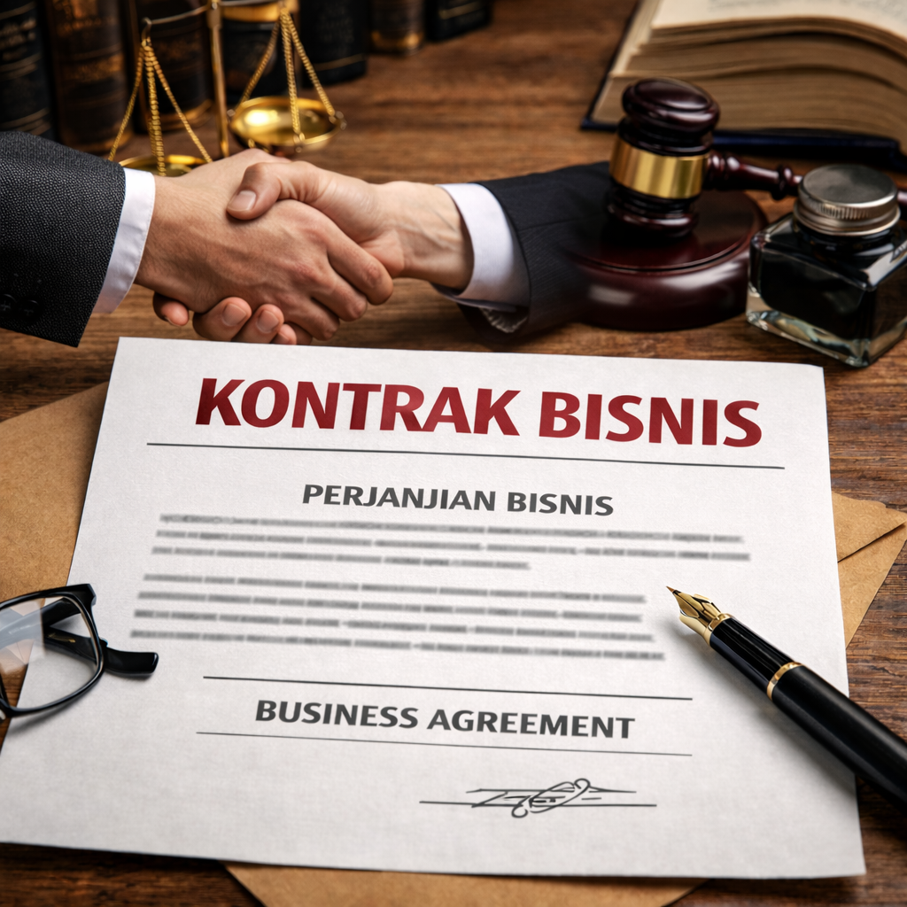 Kontrak Bisnis adalah perjanjian tertulis yang mengatur hubungan hukum antara para pihak dalam kegiatan usaha, baik antarindividu maupun badan usaha. Kontrak bisnis berfungsi untuk memberikan kepastian hukum, mengatur hak dan kewajiban para pihak, serta menjadi dasar perlindungan hukum dalam menjalankan kerja sama bisnis.
